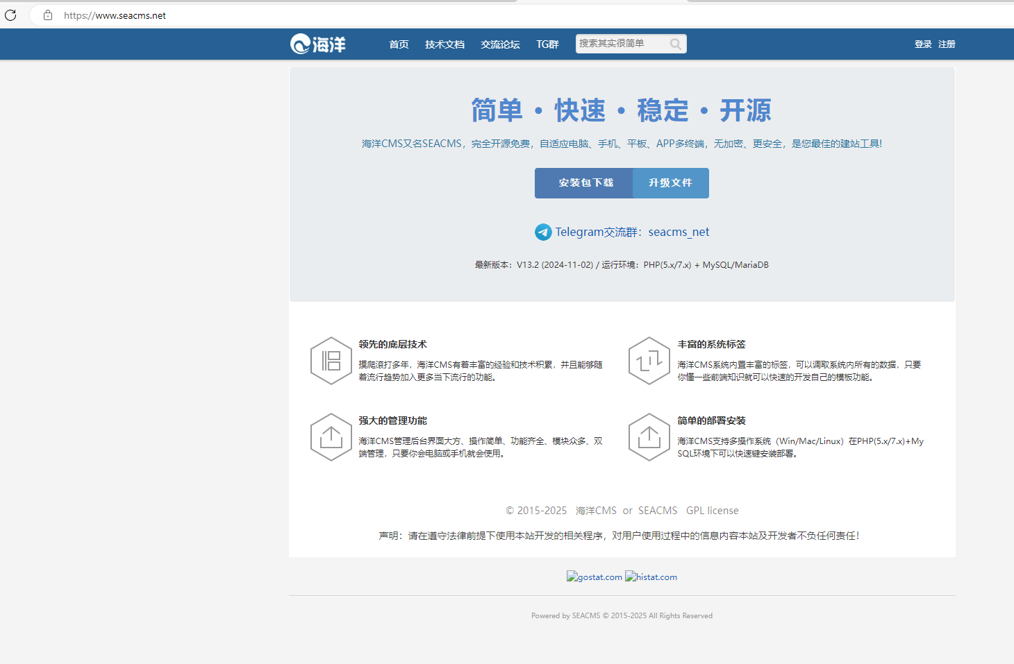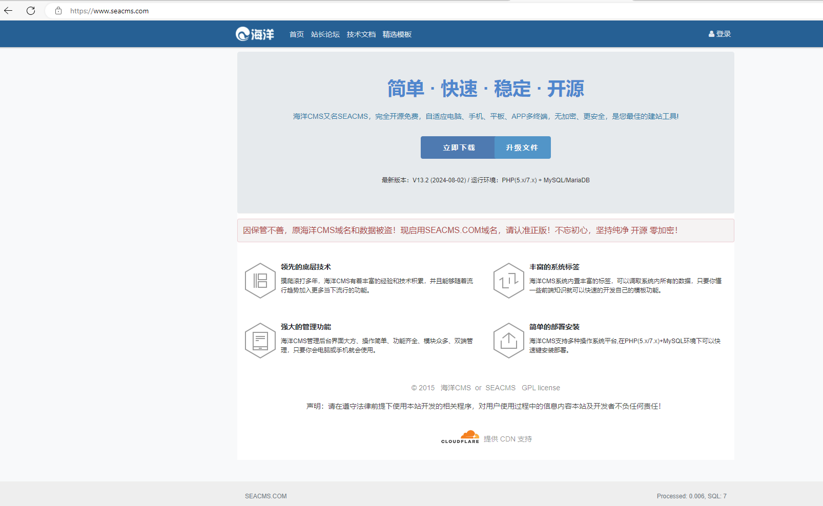 海洋CMS又名SEACMS,简单 · 快速 · 稳定 · 开源 ,完全开源免费,自适应电脑、手机、平板、APP多终端,无加密、更安全,是您最佳的建站工具!