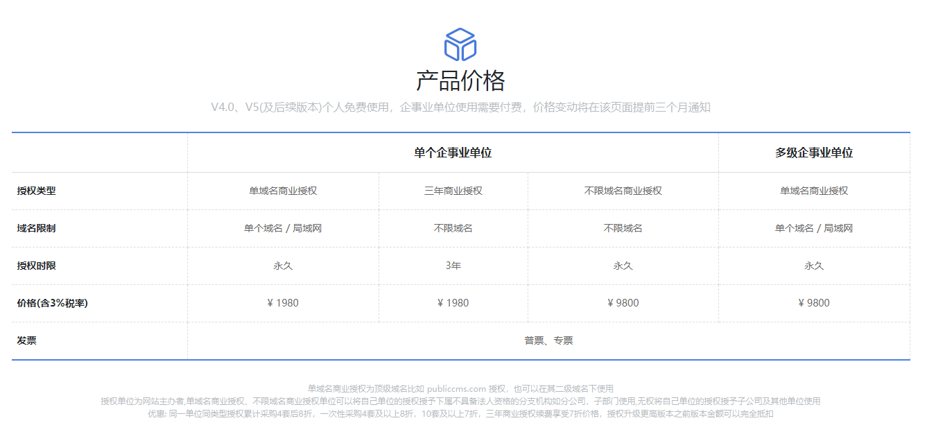https://www.publiccms.com/price.html