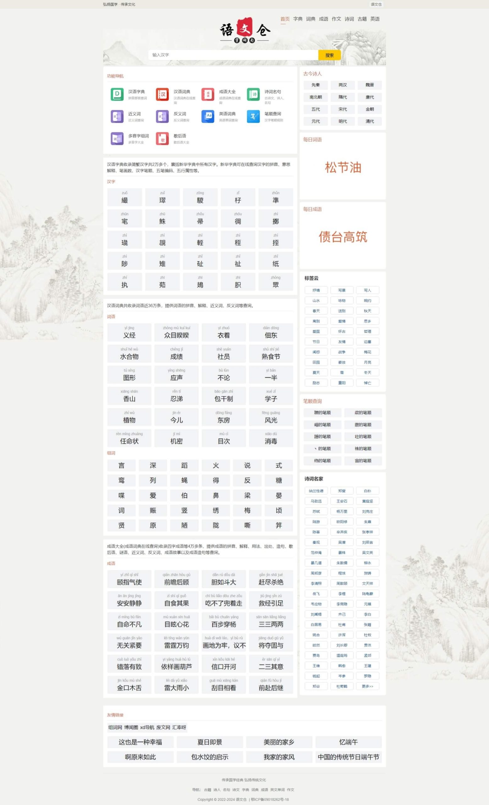 帝国CMS7.5七合一/新华字典,在线字典,成语大全,古诗大全,诗词名句,古诗词曲,古代典籍