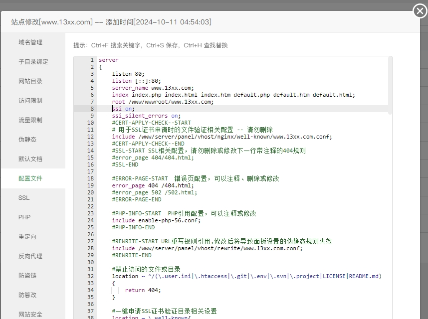 运行环境:php5.6+mysql5.7,需要开启SSI!