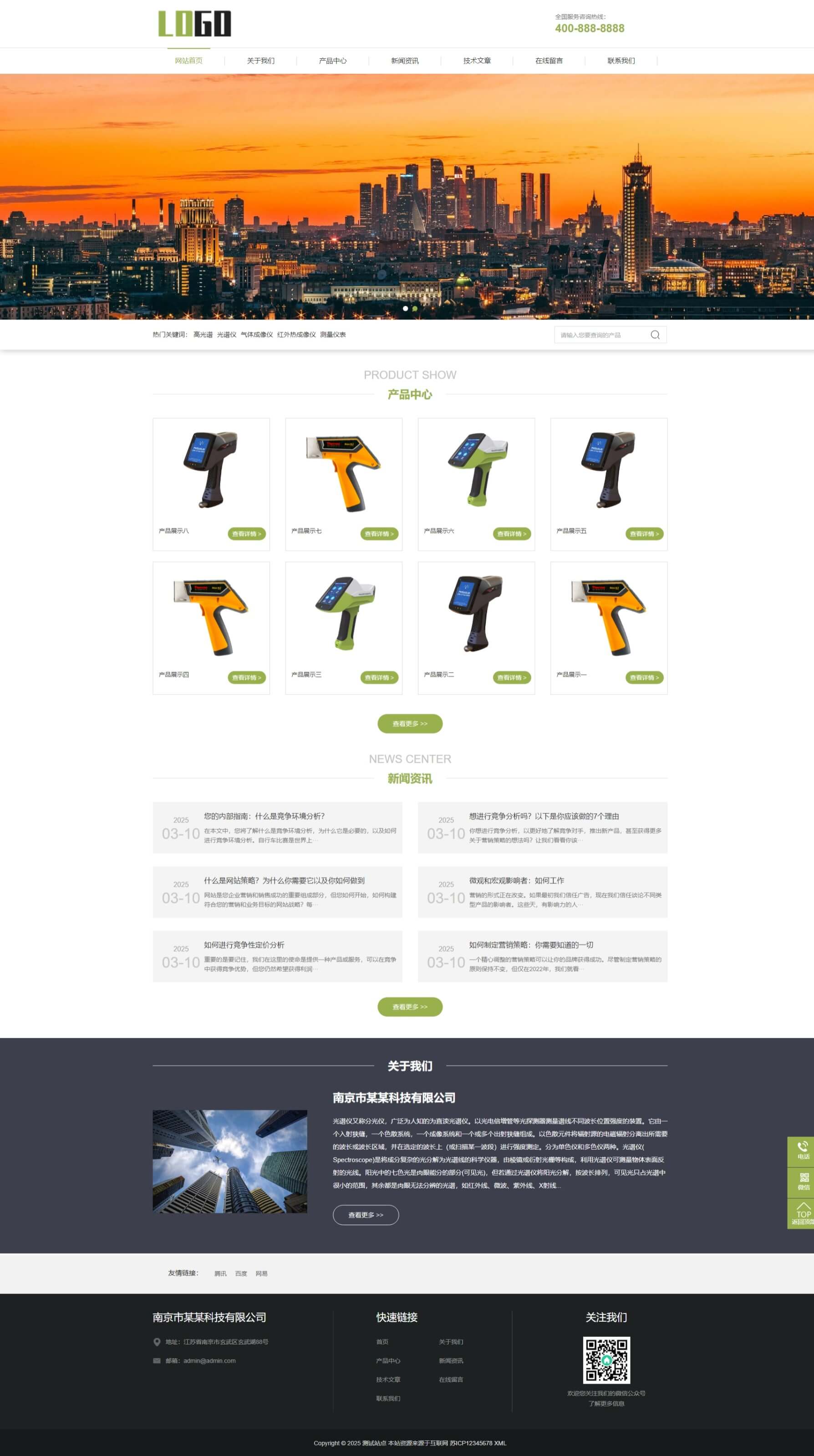 (自适应移动端)成像仪光谱仪网站模板 科学仪器设备网站源码下载 - 带三级栏目