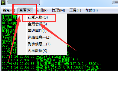 其实也很简单,当你进入游戏以后,点击M2server程序,然后点击查看,在线人物