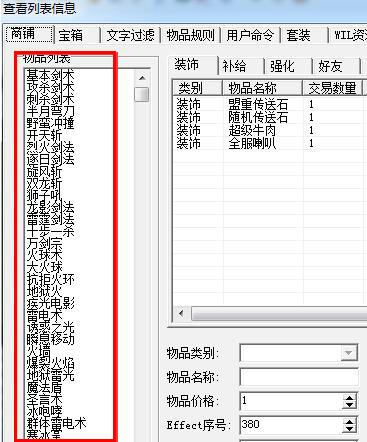 可以看到物品列表,这里面就是游戏中的所有装备了