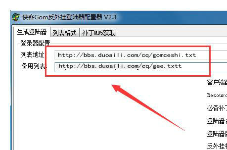将上面的列表复制到登录器生成器中的列表地址和备份列表的位置。GOM和GEE的位置不同