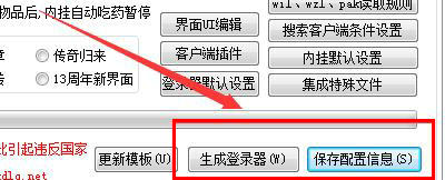 第六:点击保存,然后点击生成登录器,这样就可以了,生成的登录器在D:\Mirserver\登录器里面,复制到客户端中打开就可以了!